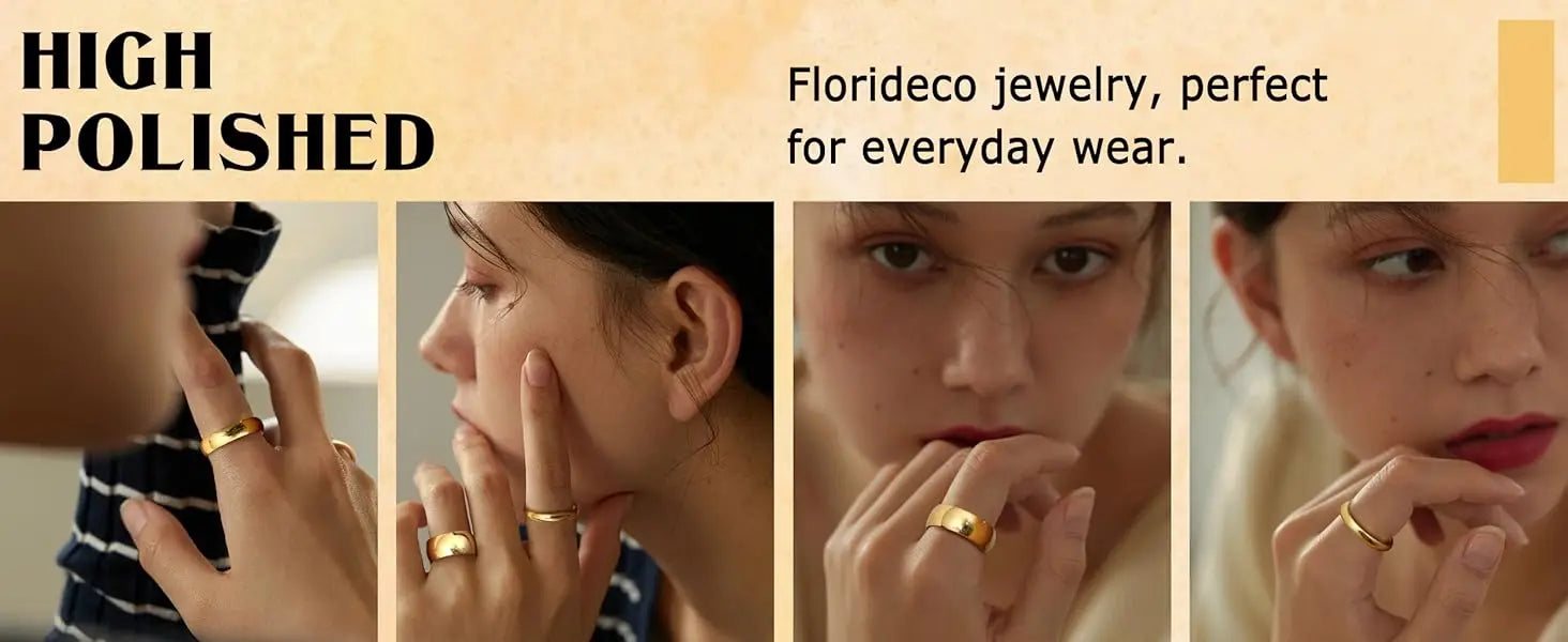 14K Gold Plated Ring for Women Men Thick Thin Pinky Thumb Ring Wedding Band Ring Non Tarnish Plain Domed Comfort Fit Size 6 -10
