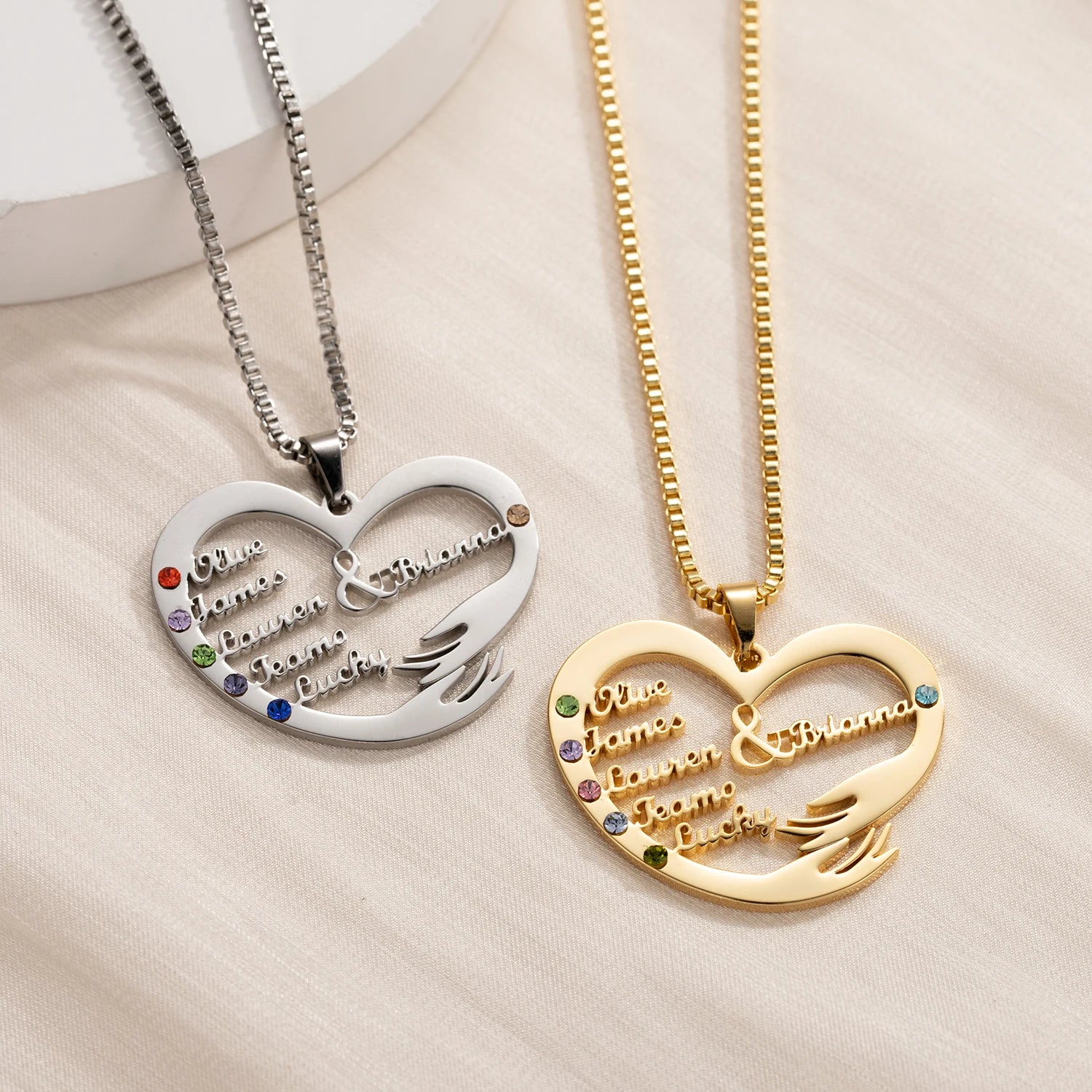 Qitian Custom Name Necklace With Birthstones Family Jewelry Personalized Heart Mother And Child Pendant Mother's Day Gift Chain