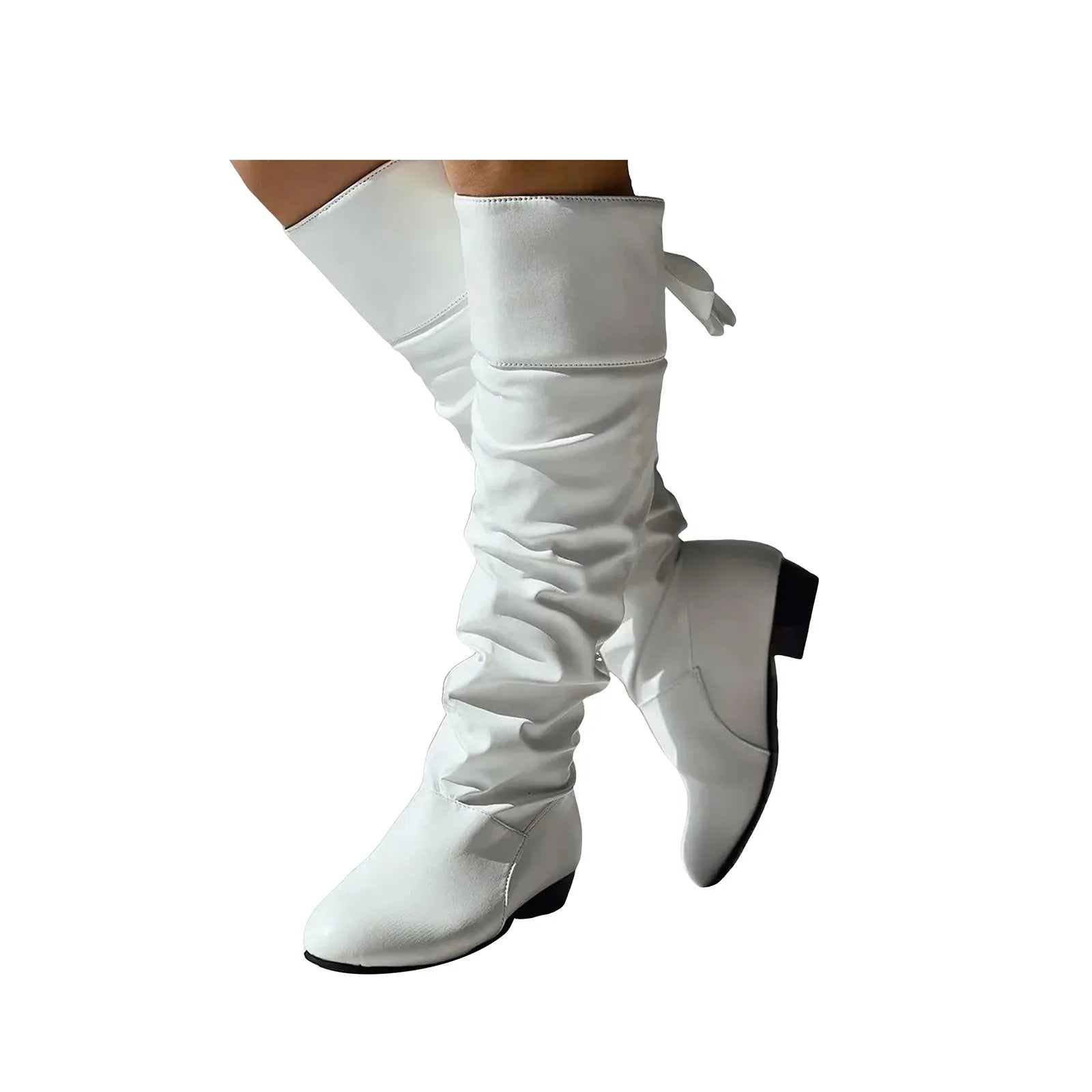 Womens Fashion Leather Shoes Bow Tie Thick Heel Long Boots Socks For Women Knee High Boots British Style 2024 Winter Flat Shoes